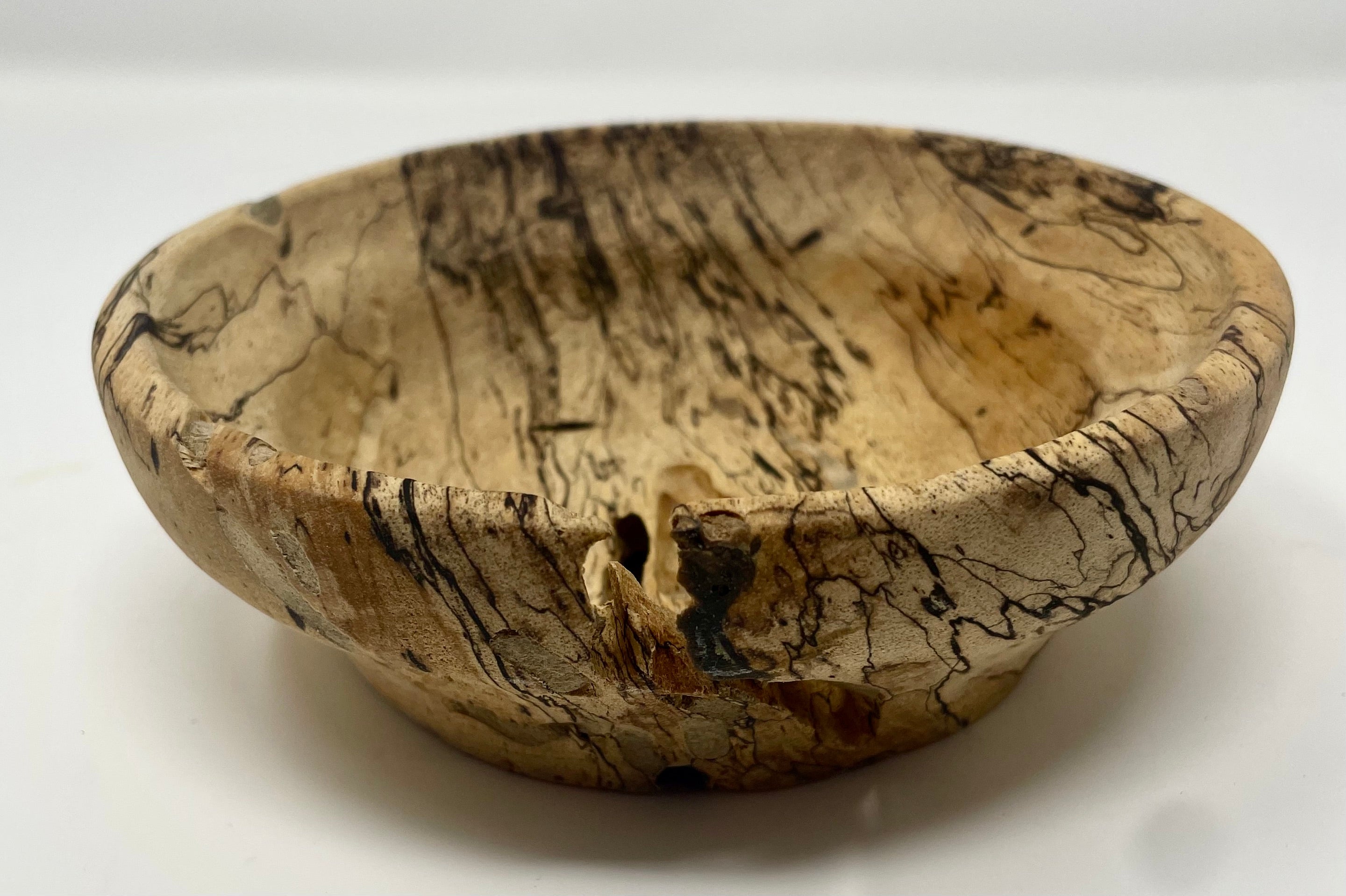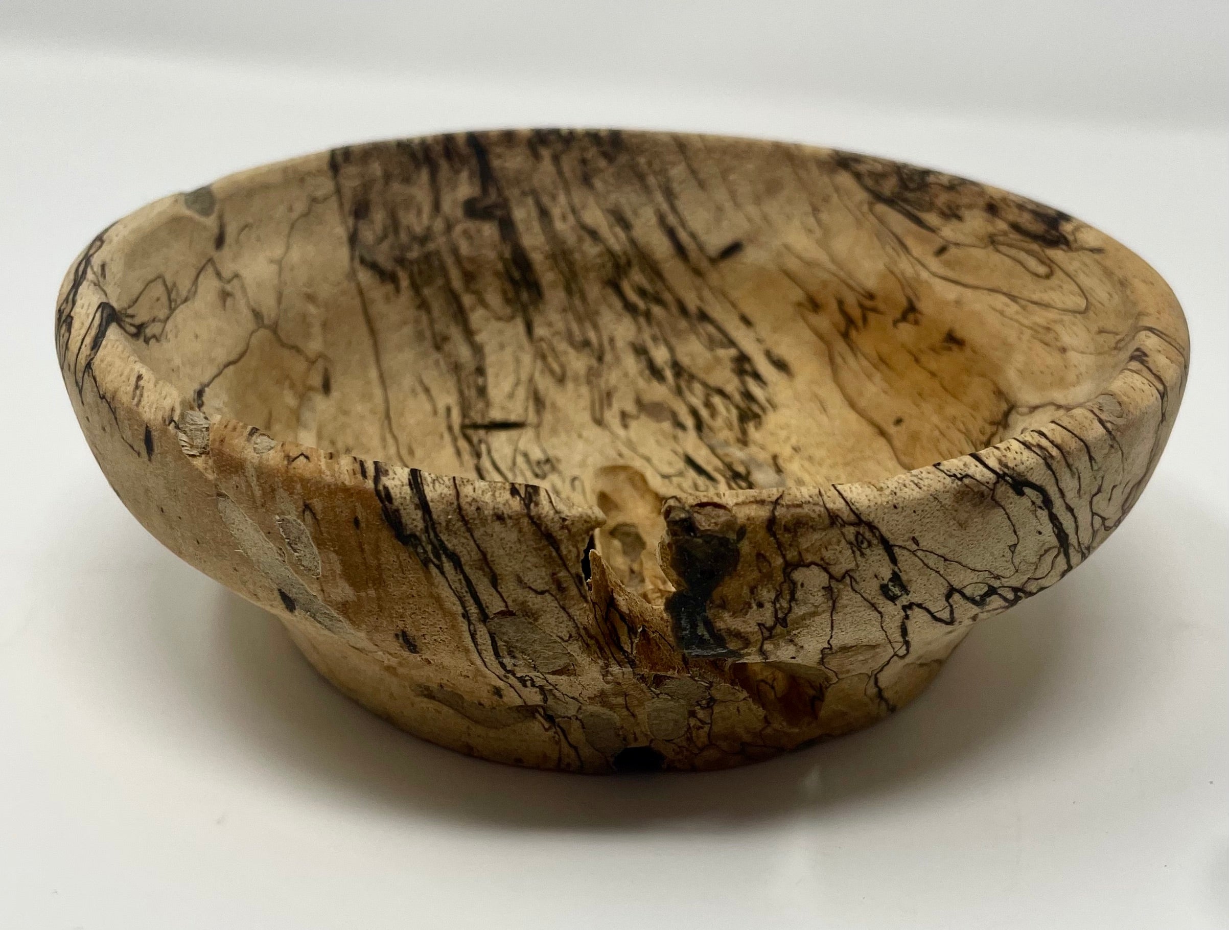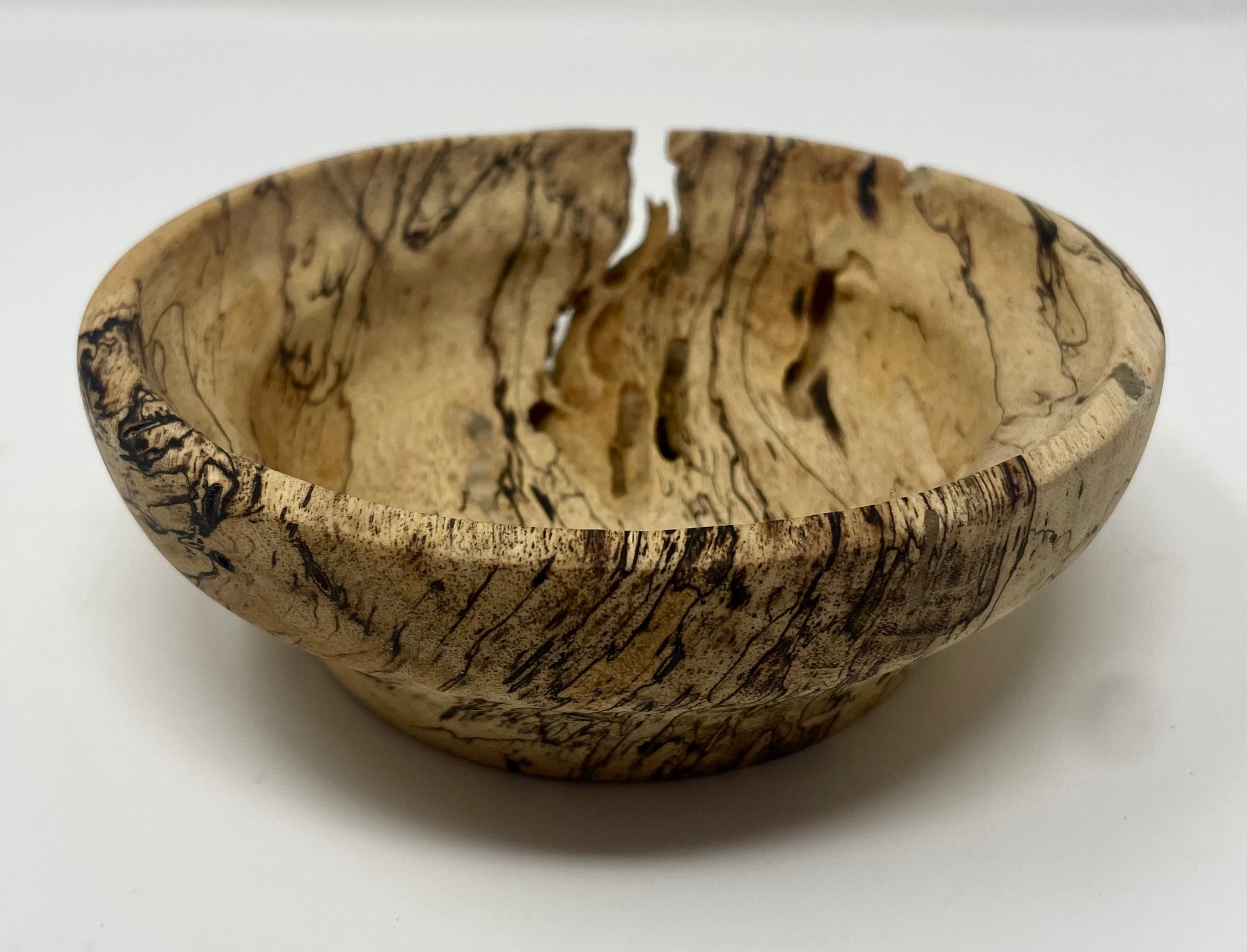A small rustic decorative owl that adds a unique touch to any spacem crafted from spalted maple wood by Ross Nooney. It measures 6" x 2".