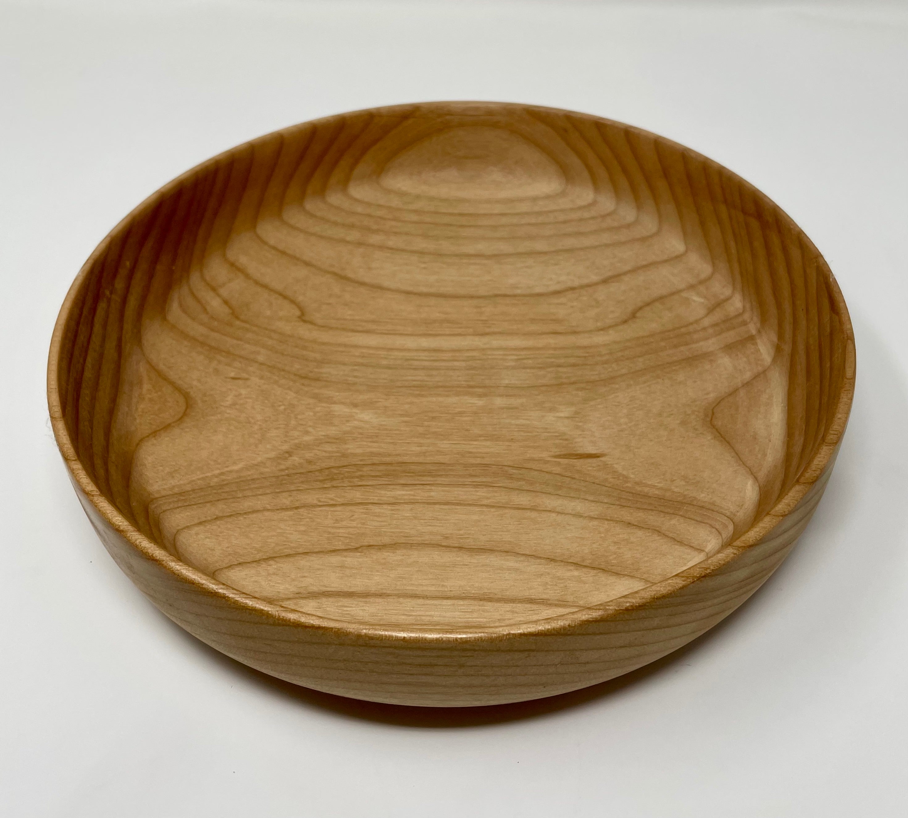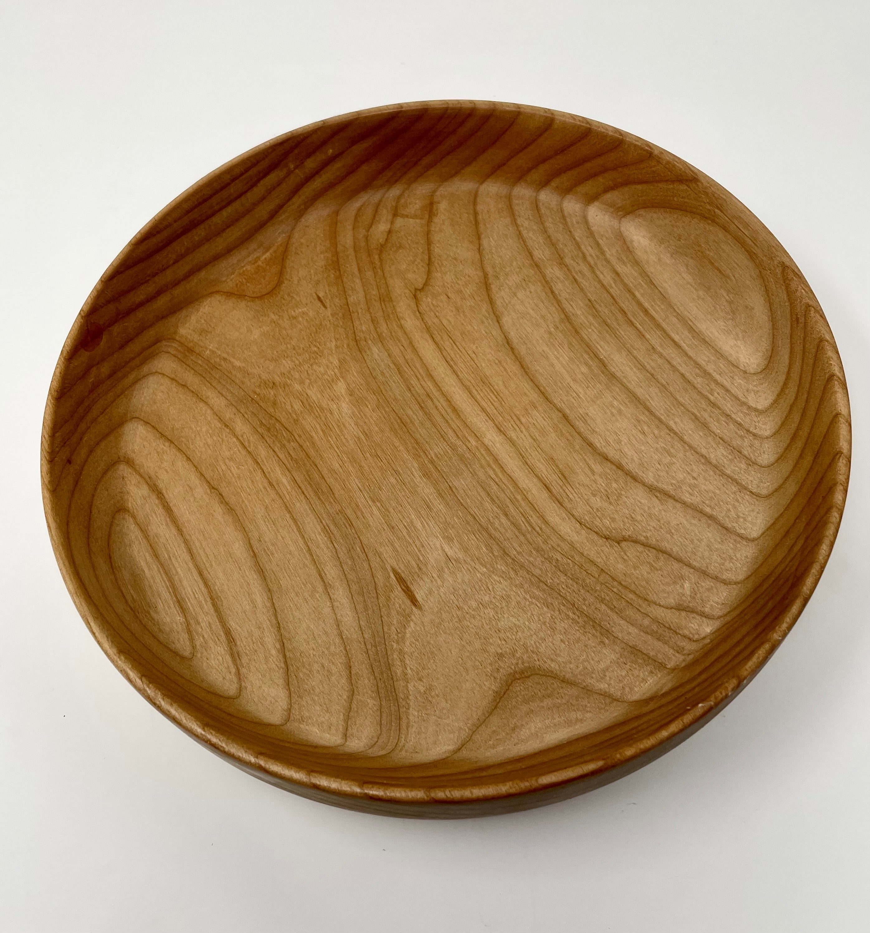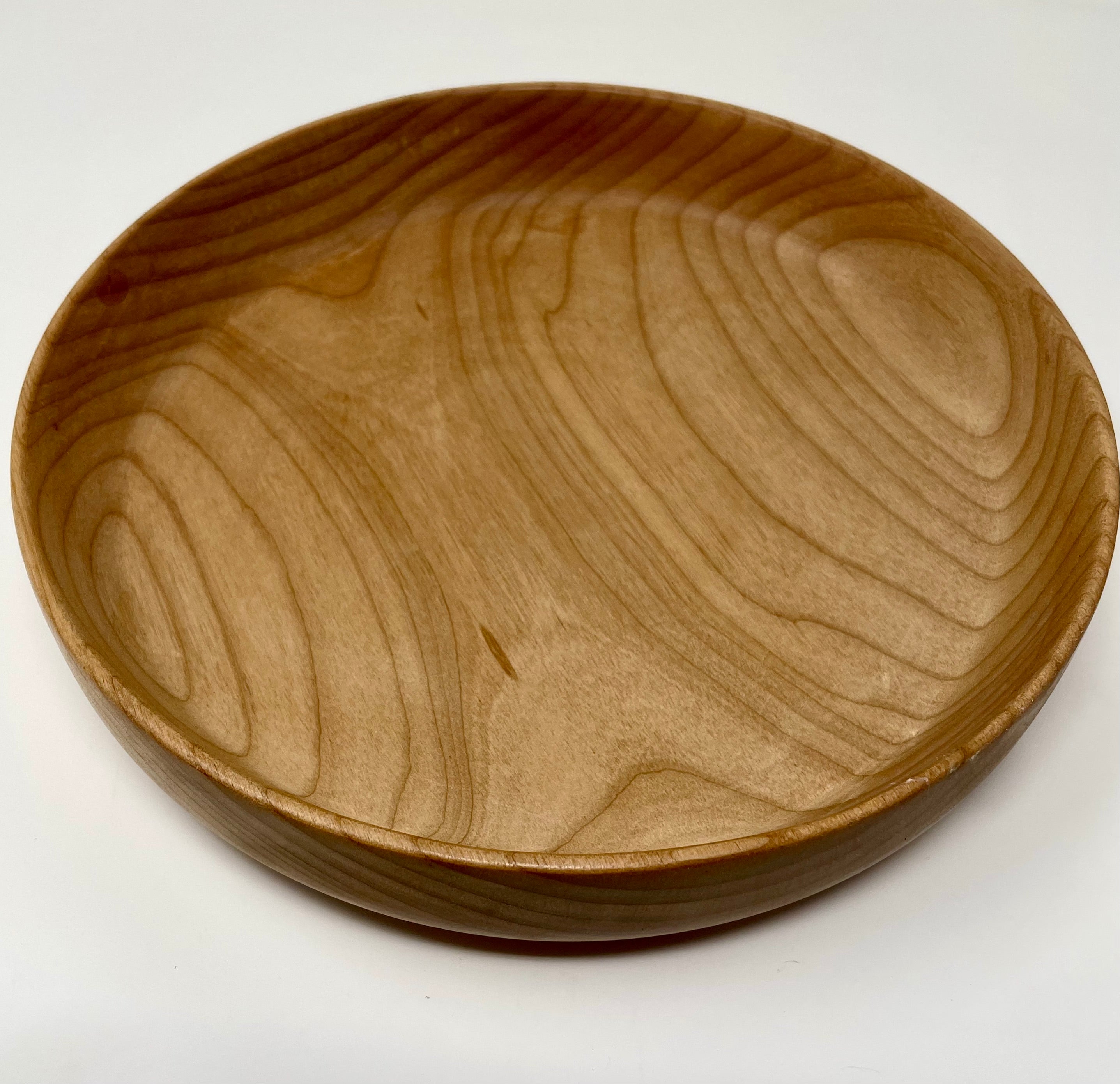 Practical and versatile for holding fruit or chips, this shallow bowl is crafted from alder wood and measures 9 5/8" x 2". Handcrafted by Ross Nooney.