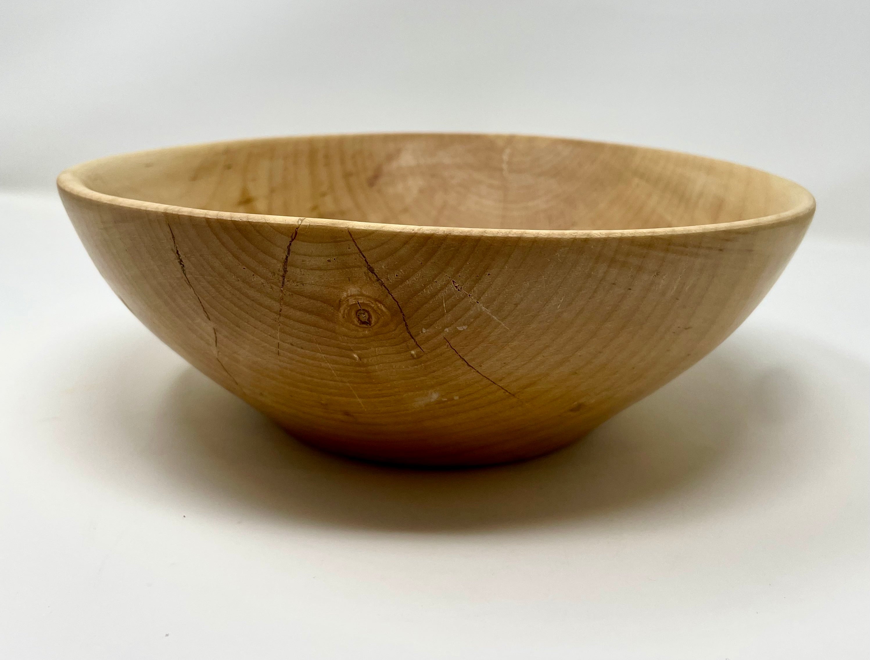 A very functional bowl - perfect for holdin fruit or serving your favorite salad. Crafted from maple wood with unique natural character. Handmade by Ross Nooney.