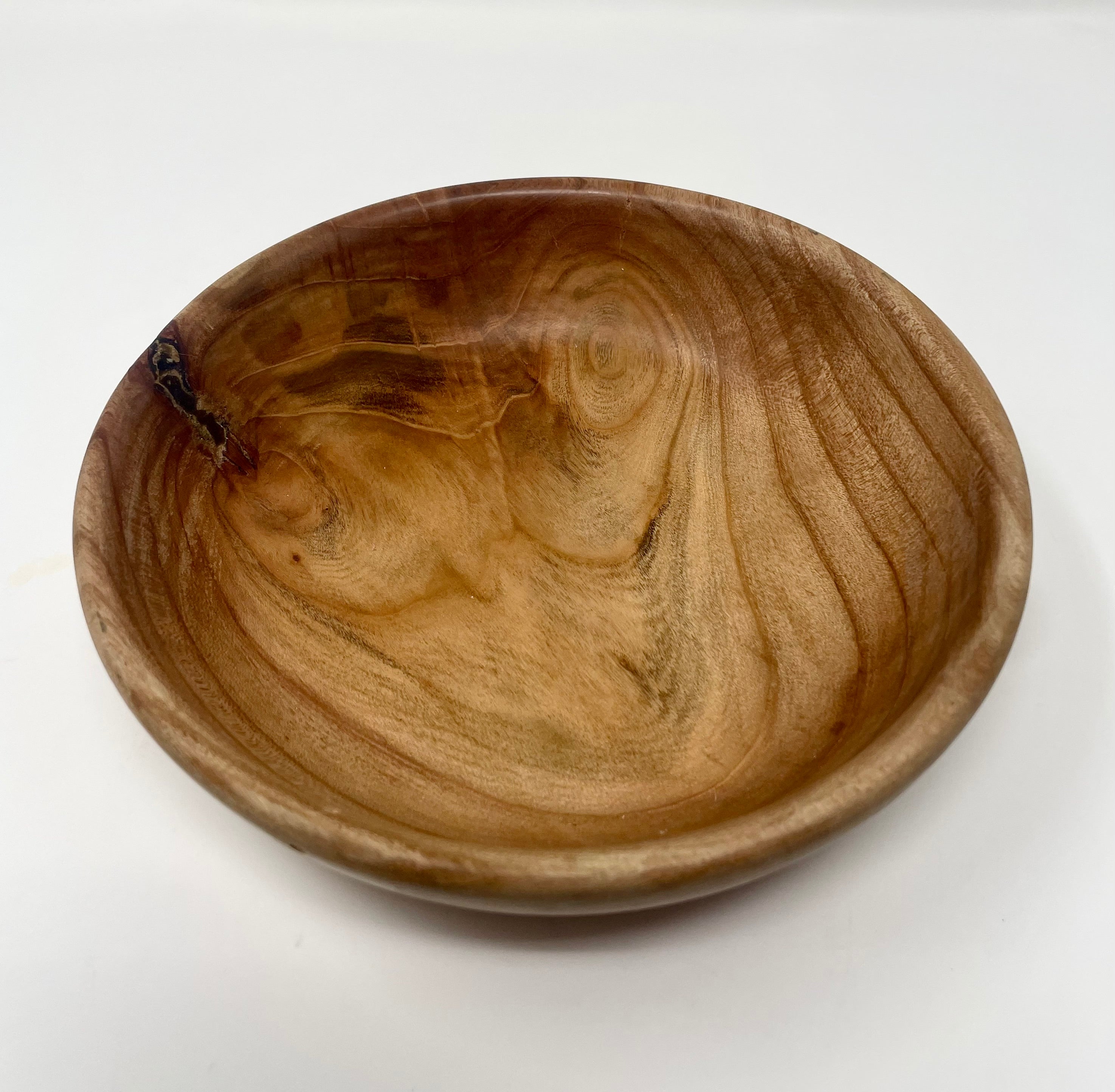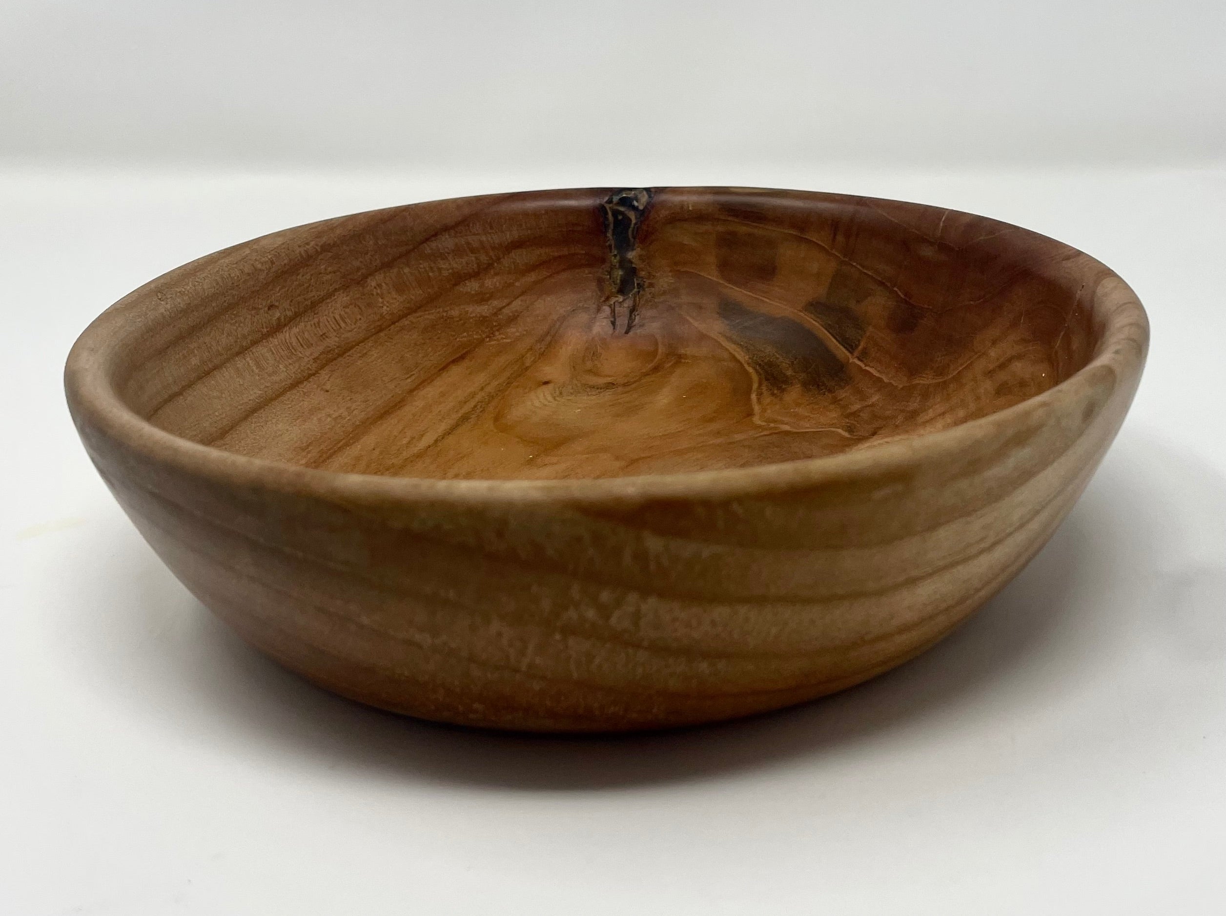 Maple wood always surprises us with its unique natural characteristics, and this beautiful bowl, small dark spots stand out and enhance its charm. It measures 71/8" x 2". Handcrafted by Ross Nooney.