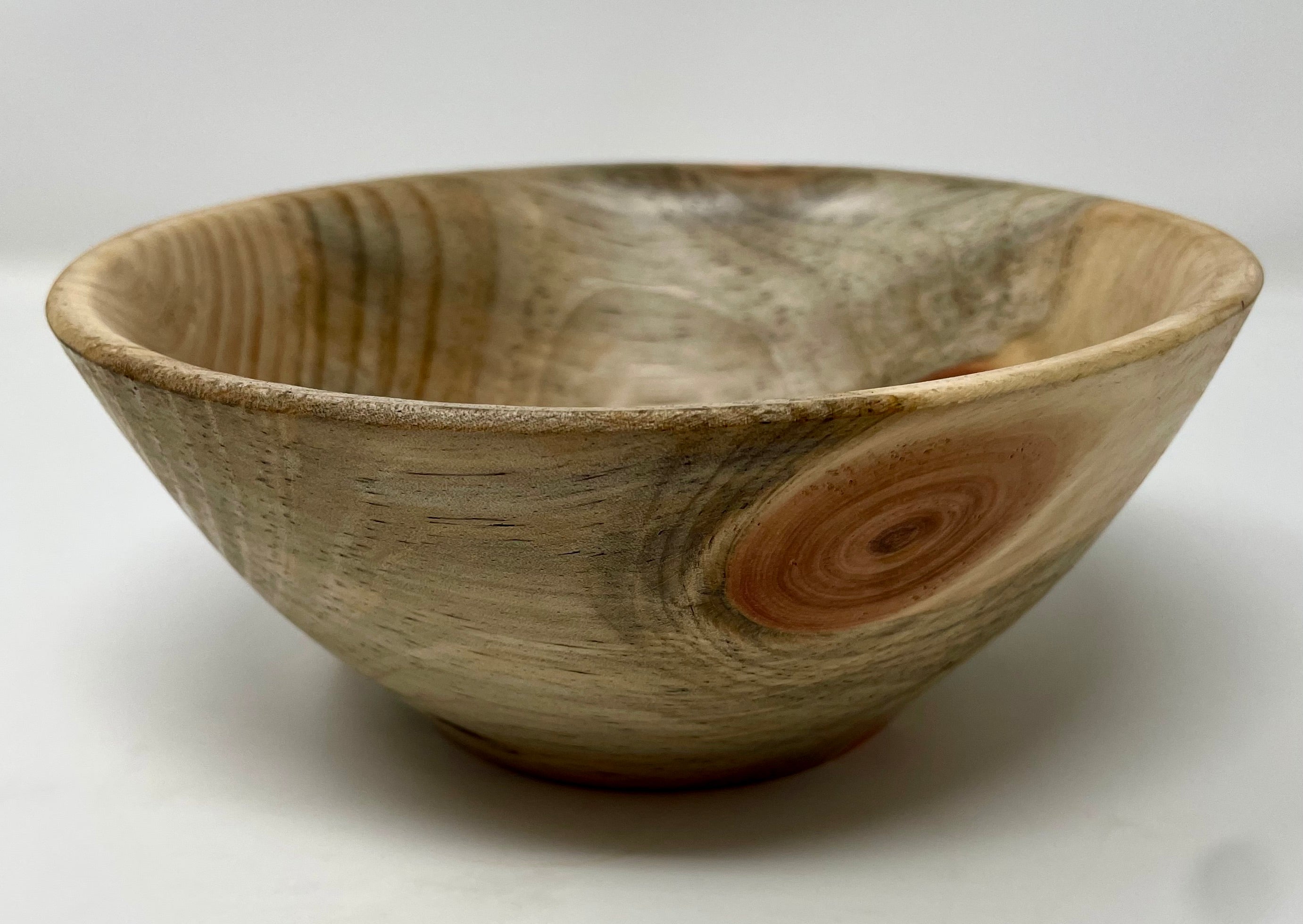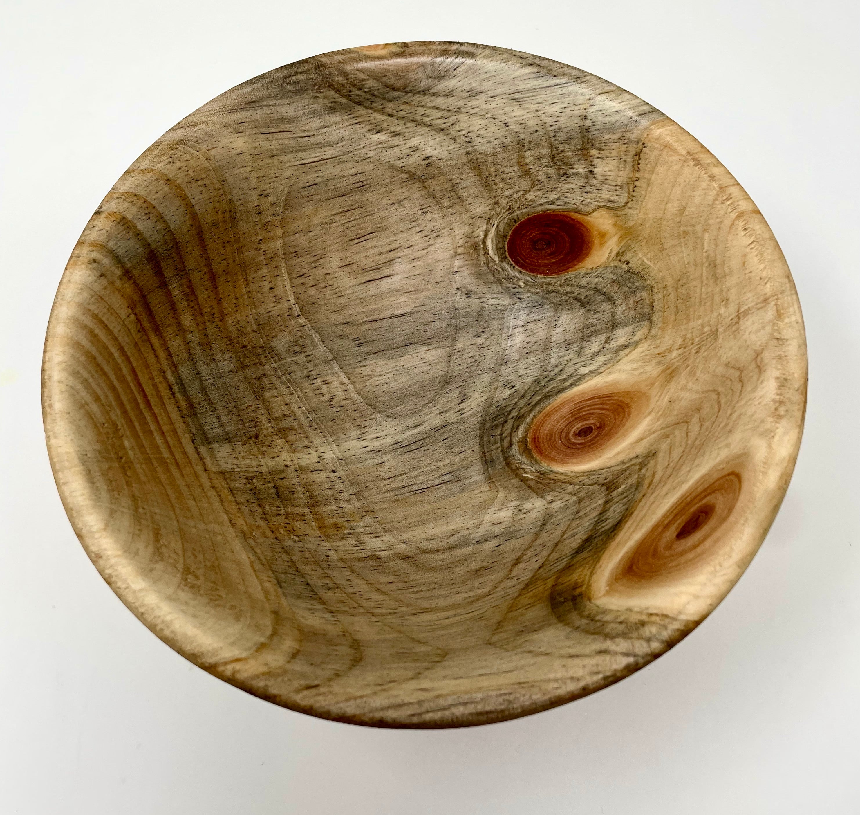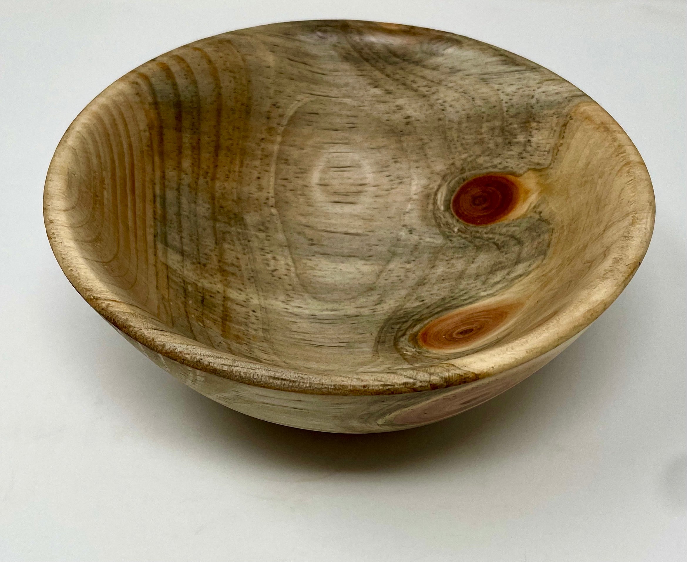Monkey Puzzle wood is characterized by its knots and subtle gray streaks, which enhance the beauty and make this lovely snack bowl truly unique. Handcrafted by Ross Nooney.