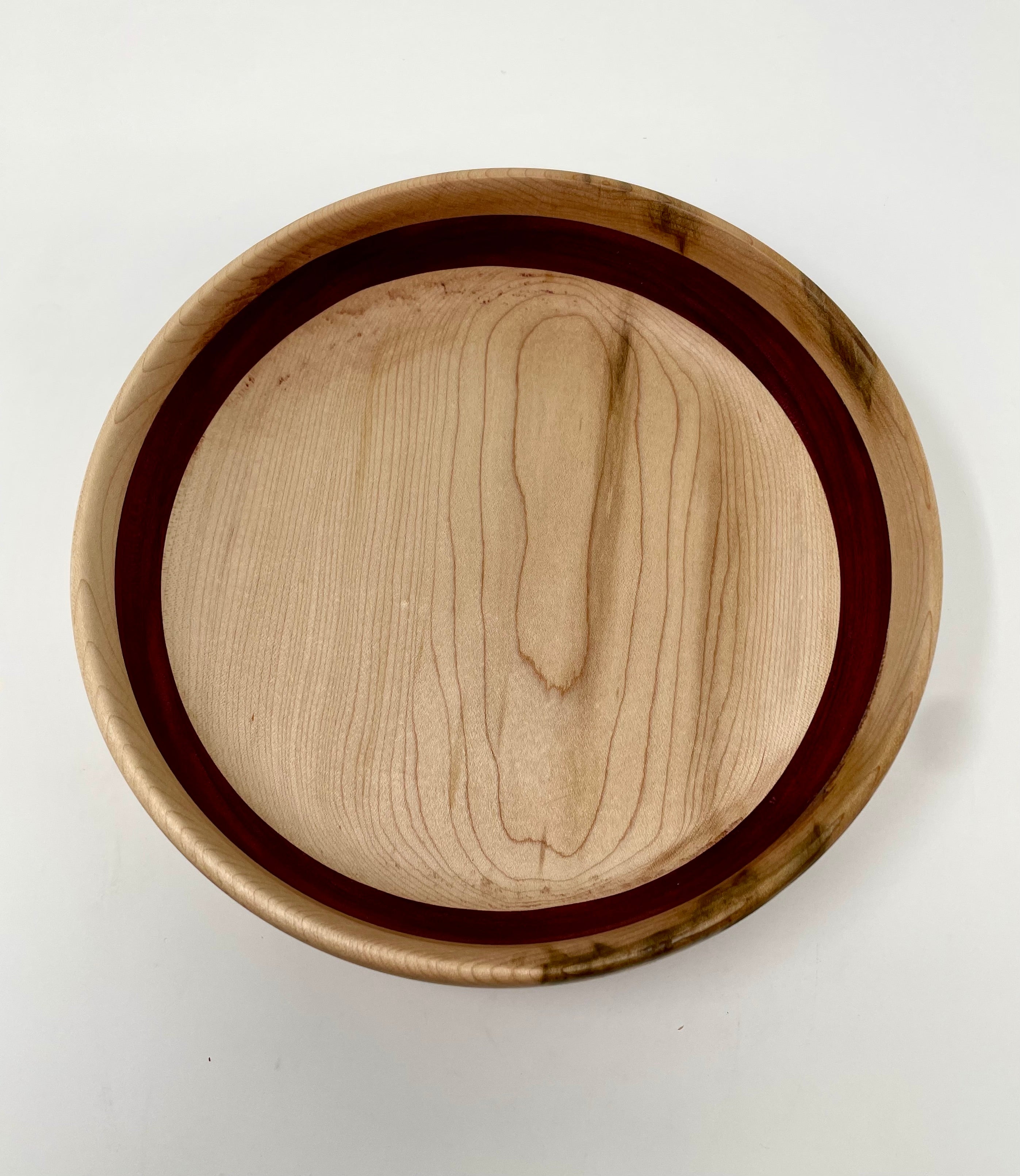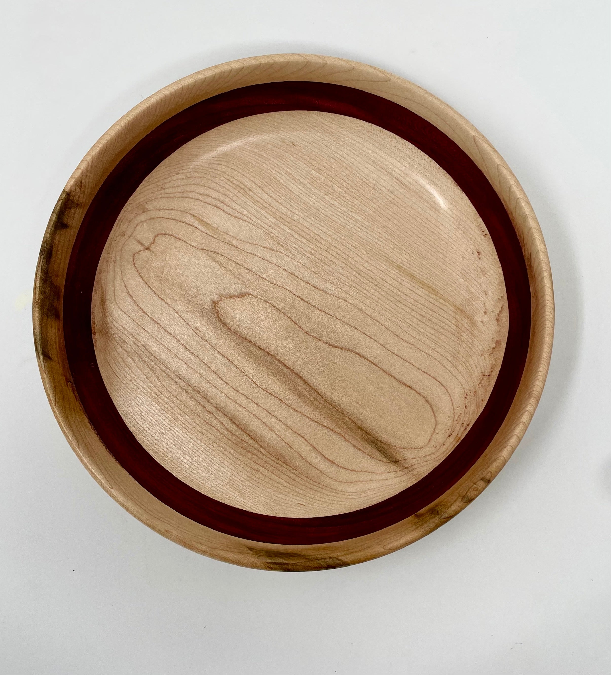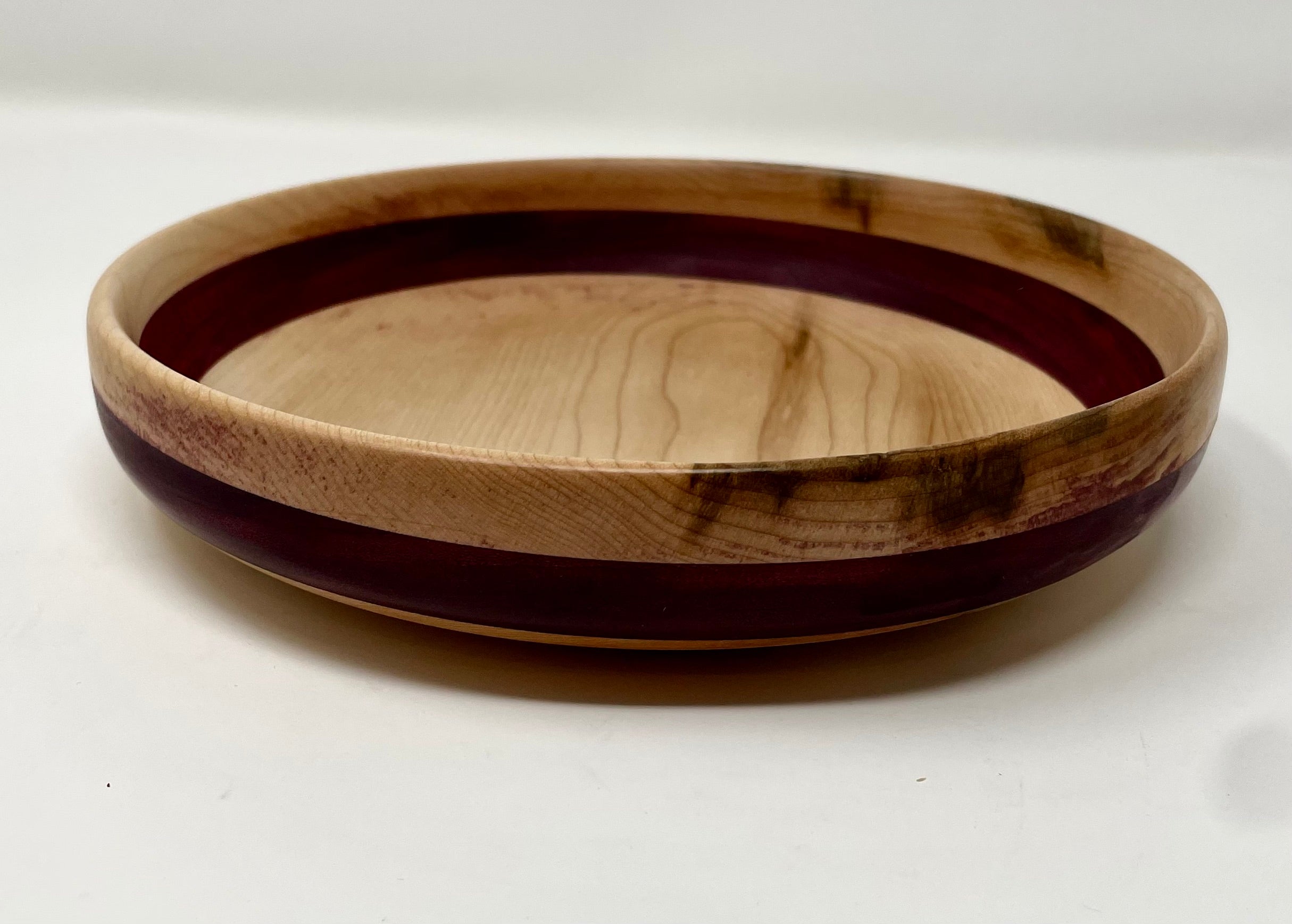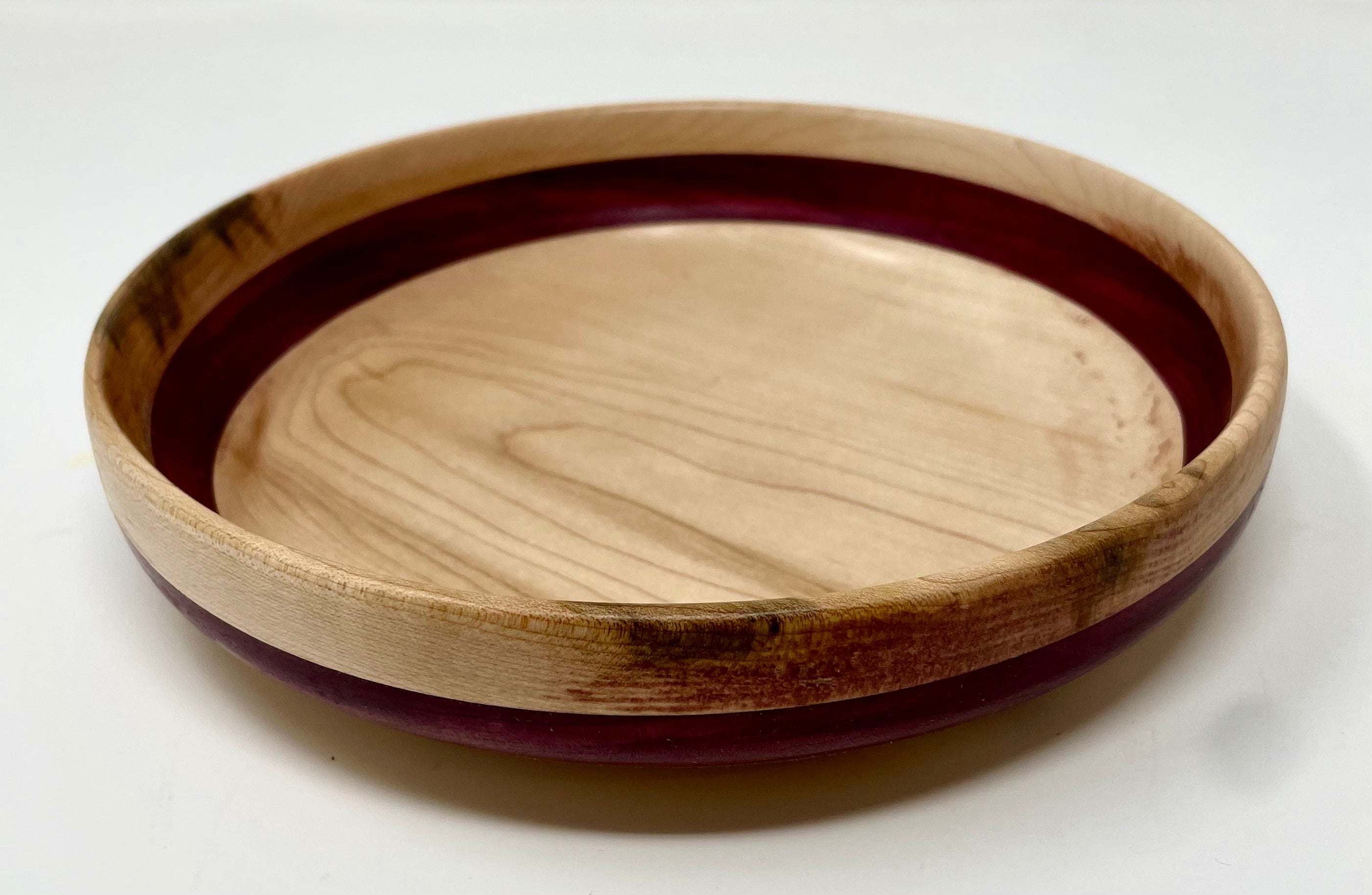 Beautiful work by Ross Nooney, featuring an inlay of purple heart and maple wood. A versatile bowl perfect for peanuts, nuts, etc., or simply as a decorative piece.
